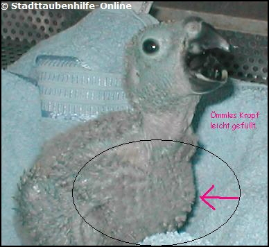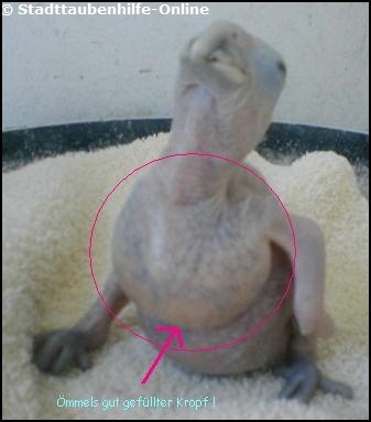 Insbes. bei der Handaufzucht oder Zwangsernährung muss die Füllung und Leerung des Kropfes gut kontrolliert werden. Das kann bei sehr jungen Vögeln durch Augenschein, bei älteren besser durch Abtasten geschehen.