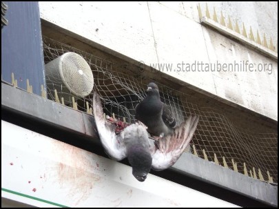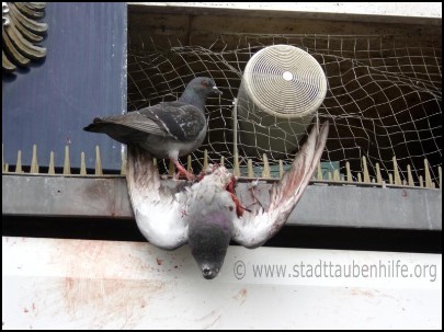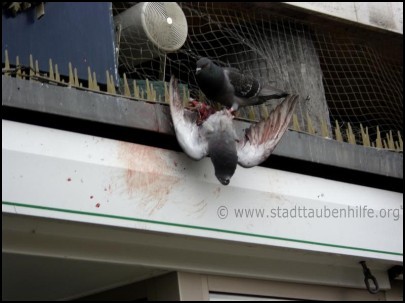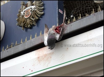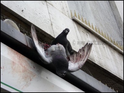 Stadttauben, heimatlose Haustiere, sie können aufgrund ihrer Abstammung von der Felsentaube nicht anders, als sich Zuflucht in den Städten zu suchen.